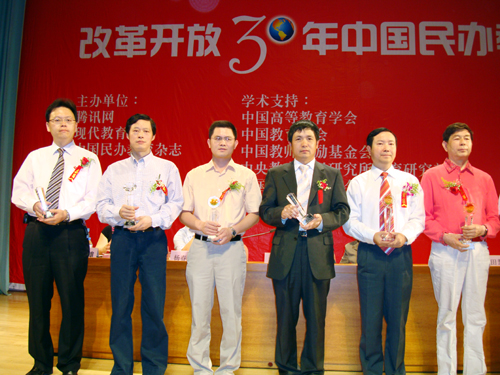 由腾讯网、现代教育报、中国民办教育杂志三方联合主办,百代灵智教育机构承办的“改革开放30年中国民办教育大典”颁奖盛典及新闻发布会于5月26日在北京大学百年纪念讲堂隆重举行。 “改革开放30年中国民办教育30名人”、“改革开放30年中国十大品牌民办高校”,“改革开放30年中国十大品牌独立学院”、“改革开放30年中国十大品牌教育集团”等多个奖项都在现场逐一揭晓。