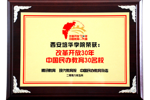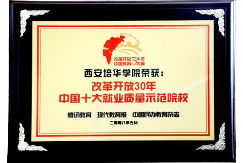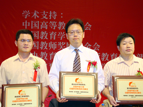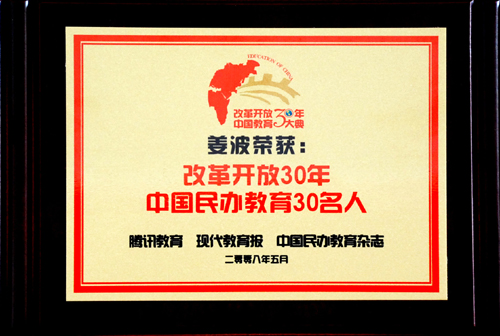 我校凭借悠久的办学历史、雄厚的办学实力荣获改革开放30年中国教育大典五项殊荣:“中国十大就业质量示范院校”、 “中国民办教育成功典范”、“中国民办教育30名校”、创始人姜维之先生荣获“中国民办教育元勋人物”、理事长、院长姜波博士荣获“中国民办教育30名人”。