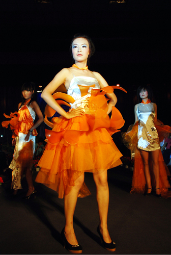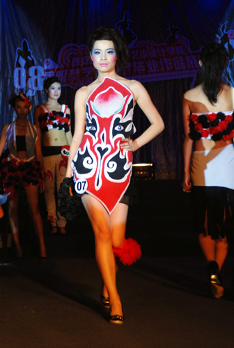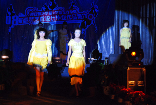 6月12日晚,我校艺术设计学院“2008届服装艺术设计毕业作品展演”在培华学院长安校区大学生活动中心隆重举行。艺术设计学院服装专业是我校成立之初首批建立的专业之一,在服装设计培养方面具有丰富的教学经验。此次展演同学们用自己设计的作品来给四年大学生活画下了美丽而圆满的句号。18个系列118套优秀服装毕业设计作品给在场的领导、嘉宾及全院师生留下了极其美妙和深刻的印象。