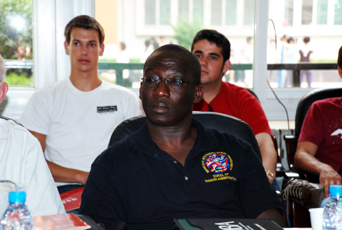 我校经济管理学院院长李学智教授首先代表我校全体师生欢迎访问团的来访,并向代表团介绍了我校的概况。我校师生代表还针对当前中国的经济局势以及发展状况作了简要的介绍,访问团就经济教育、改革开放前后中国经济的发展状况、社会福利和税收等相关问题和我校师生代表进行了愉快的交流和沟通。。