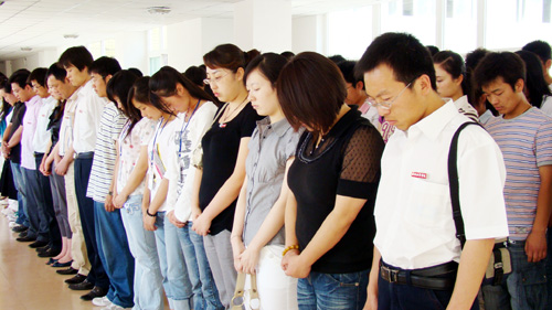 在经济管理学院李学智院长的号召下,到场的全体人员怀着沉痛的心情为灾区遇难的同胞默哀三分钟。随后,李学智院长做了重要的讲话。他强调说,经济管理学院的全体师生要团结一致、众志成城,将爱心传递给灾区的遇难者,并向每一个抗震救灾的军人和志愿者致敬。最后,由李学智院长作为代表将经济管理学院募捐的33000余元善款转交给了我校红十字会的代表。