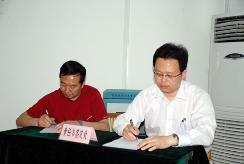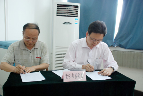 随后,我校主管保卫和总务工作的的李天禄院长和党委王书记分别针对我校创建平安、文明校园”工作做出了详细的部署和更进一步的安排,确定了工作目标和要求。副院长杨定君、周振豪分别宣读了 “安全稳定责任书”和“文明校园活动责任书”。经济管理学院李学智院长、学生处王春来处长和外国语学院学生陈俊晗分别作为院系、处室、学生代表针对我校创建“平安、文明校园”的建设工作做了表态发言,并现场签订责任书。