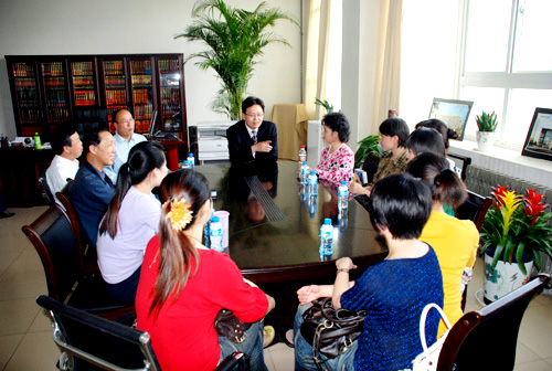 姜院长在报告会结束后倡议,广大师生要学习陈爱美老师吃苦耐劳的精神,学习她自觉承担起对传统文化传播的社会责任。他说,秦腔作为中国的戏曲的源头,在陕西甚至全国有广泛的群众基础,而高校作为传播传统文化的重要阵地,更应该注重传统文化的继承和普及。他倡议成立“秦腔文化剧团”,希望陈爱美老师带领我校来自五湖四海的学子一同感受三秦文化的魅力。随后,姜院长和陈爱美女士在会议室与我校播音与主持艺术专业的老师进行了亲切交流。