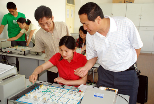 座谈结束后,考察专家组成员一行分赴各院系,对我校新申报专业的相关实验室、实训室、资料室等硬件设施进行了检查,还查看了申报专业的教学计划、人才培养方式以及学生的毕业论文、历年试卷。通过文字资料和实训室实地操作等多种形式的考察,认真系统地了解了我校新增专业学位申报工作的全面情况。