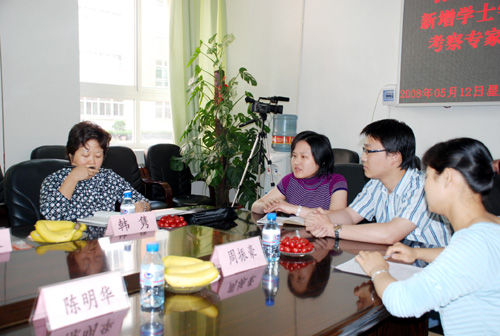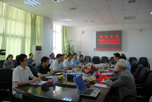 5月12日上午,省学位办学位申报考察专家组来我校对7个新增专业学位授予权申报工作进行考察评估。专家组由李玉忍教授带队,王峰、赵康、戴鲲、韩隽、张文生等六人组成。院长姜波,党委书记王斗虎,副院长陈明华、周振豪、杨定君等校领导及七个申报专业的负责人参加了评估工作会议。