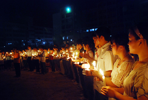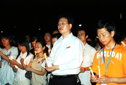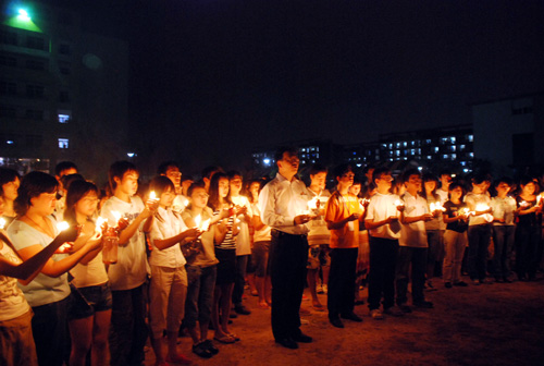 姜院长激动地说,一支支蜡烛,一点点烛光,就是一颗颗真诚的心。他劝慰在场的来自灾区的同学,激励大家努力学习,用实际行动支持灾区重建。