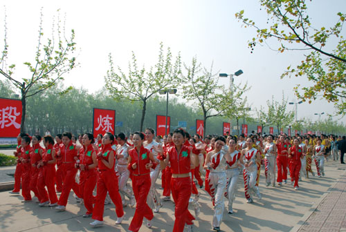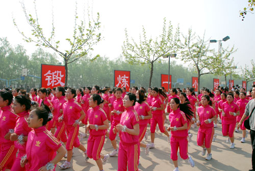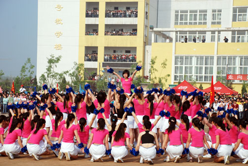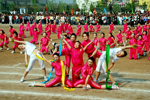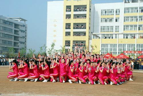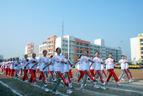 彩旗队、裁判员、运动员们在雄壮的运动进行曲中展现着蓬勃的朝气,一句“更快、更高、更强”的奥运格言响彻整个培华校园,激荡着广大同学的心。各院系健美操参赛队随着欢快的节奏跳起舞动,跟着音乐变换不同的队形,充分表现出我校学生的顽强斗志、对奥运的向往和热情。