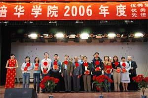 姜波副院长发表讲话:在过去的一年里,我院全体教职员工齐心协力、克服种种困难,在迎评促建等工作中表现突出,充分发挥了主观能动性和分工协作精神,使我院各项工作上了一个新台阶,取得十分优秀的成绩。在此,我代表学院领导对各位教职员工表示深深的谢意。希望在今后的工作中再接再厉,为构筑和谐培华,做出积极贡献。