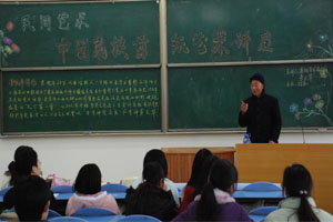 古有神笔马良,今有“神剪”天华。元月5日下午,被美国前总统理查德·尼克松称赞为“天下第一剪”的民间剪纸艺术家,河南信阳李天华老人走进培华学院,宣扬剪影艺术,得到了姜波副院长的亲切接见,并赞誉他为“弘扬民族文化的大使”。在J101教室里,随着剪刀“咔嚓、咔嚓”几下,一张红纸就在李天华老人的手中变成了一张栩栩如生的剪影。看起来既赏心悦目、触人心弦,又洋溢着时代的气息,给人一种视觉上的美好享受,现场观看的同学们都被这一艺术给征服了,纷纷赞叹老人技艺的精湛。