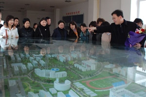 随后,在姜波副院长、新闻传播学院方宝森副院长、保卫处王建安处长、招生办姚文静副主任的陪同下,参观了我院远景规划沙盘、学生餐厅、大学生活动中心、学生公寓。在姜副院长的讲解下,大家一起回顾了培华的发展历程:校名的更迭,校址的搬迁……特别是得知学院在校生人数已从几百人(她们上学时)发展到目前23000余人,校园面积增加到了1260余亩的时候,更是欣喜万千,为母校翻天覆地的变化和快速稳定的发展兴奋不已。