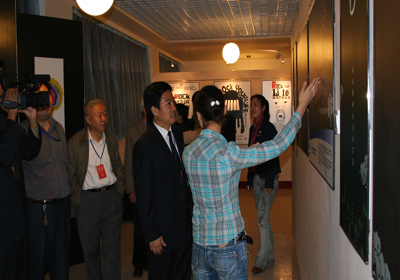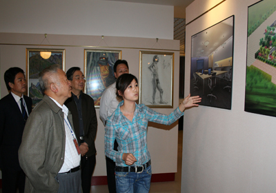 随后,专家们来到艺术设计学院,参观了成果展示厅。姜副院长提到了艺术设计学院是我校最早同日本、韩国等国家开展学术交流并互派留学生的院系之一。