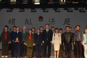 模拟法庭审判中,法学系同学以充分的准备,扎实的法学知识,娴熟的表演,赢得了台下领导的好评,同学们的一片掌声和欢呼。在休庭的互动环节中,邵副院长被主持人邀请至台上,对“马加爵现象”进行了深入的剖析,同时,也为同学们正确认识自我和处理好人际关系指明了方向,将活动主题升华,把活动推向高潮。