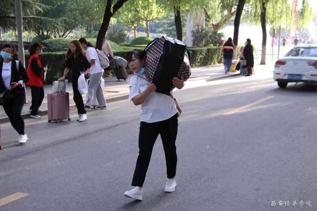 新生开学第一天,一位新生的妈妈肩上扛起近30斤的行李,里面除了孩子上学的生活所有,更多的是孩子爱吃的零食。看到这儿,小薇不禁想起一句话,“当女人成为母亲,就会变成超人,肩能扛,手能提,为孩子撑起一片天。”