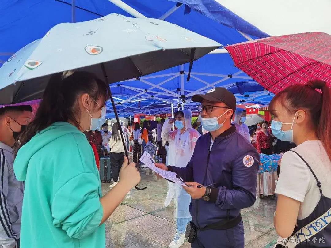 下雨,志愿者为学弟撑起一把伞,自己淋雨没关系,在他们眼里萌新最大。本该是娇滴滴的姑娘,但却为了尽快把行李为新生运送到宿舍,她们也可以成为“大力士”。凌晨三点多,火车站的志愿者坚守在出站口,只为新生一出站就找到接站的“家人”。夜里,再累也要坚持,横幅上“欢迎新同学”的标语更加耀眼。用我的方式迎接你。大雨滂沱,保安大叔撑起一把伞,雨中观察过往的车辆,以防止雨水弄湿新生的衣裳。