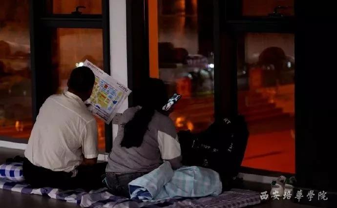 夜已深,这位父亲还在看校园地图,想尽力的记住这所大学的每一个地方,毕竟这是孩子即将生活四年的“新家”,妈妈和孩子视频,告诉孩子说“我睡在学校准备的临时休息区挺好的,别担心!”