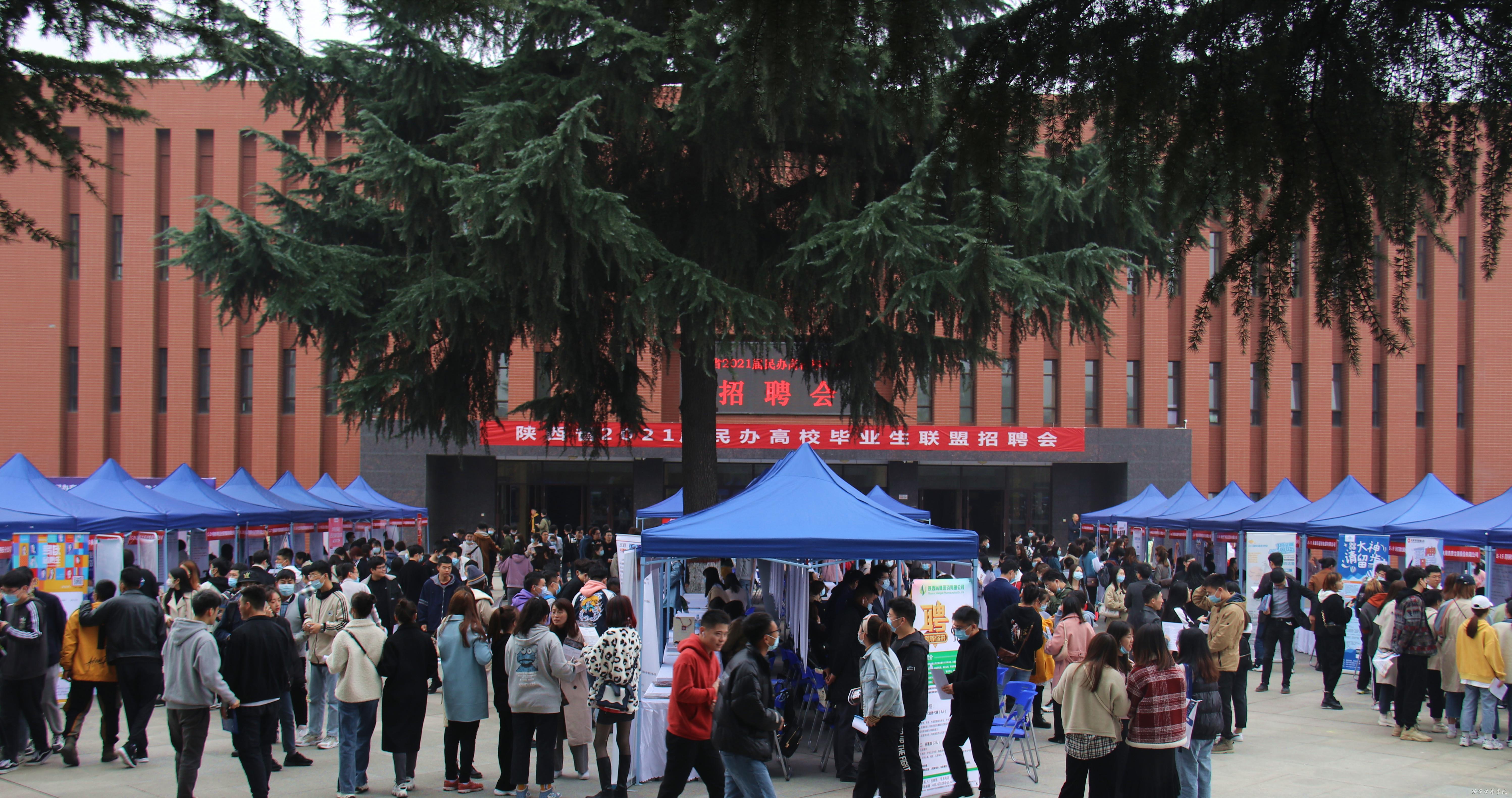 10月30日,由陕西省教育厅主办,陕西省高等学校毕业生就业服务中心、西安培华学院承办,西安翻译学院、西安欧亚学院、西安思源学院、陕西国际商贸学院、西安交通工程学院等27所院校联办的“陕西省2021届民办高校毕业生联盟招聘会”在我校长安校区五棵松运动广场成功举办。