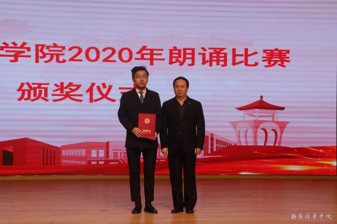 由西安培华学院常务副校长,西安培华学院语言文字工作委员会主任胡俊生教授颁奖。