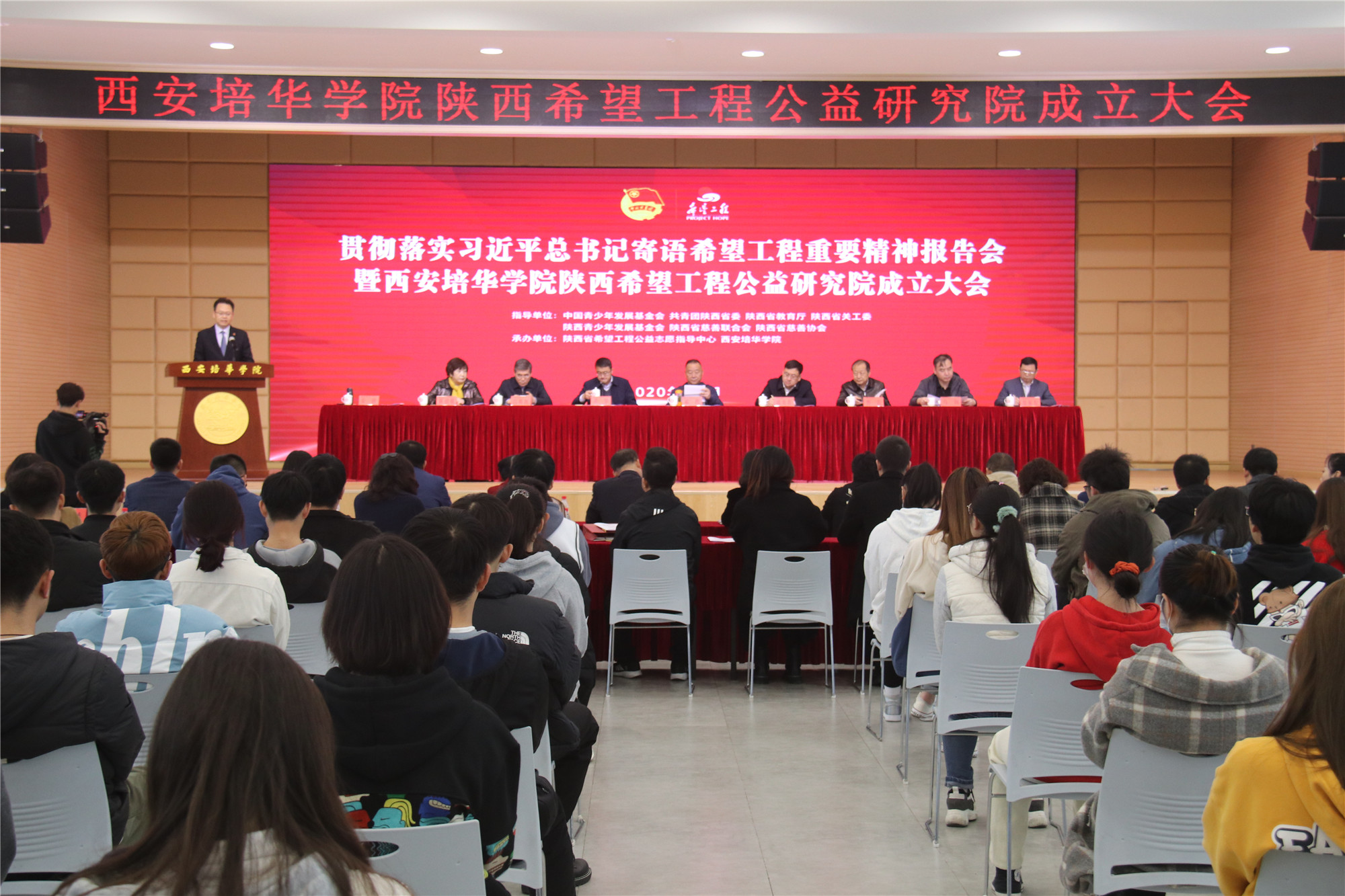 为学习贯彻党的十九届五中全会精神,进一步深入学习贯彻习近平总书记对希望工程寄语精神,推动新时代陕西希望工程事业发展。11月20日上午,由共青团陕西省委、陕西省教育厅主办,陕西省青少年发展基金会、西安培华学院具体承办的“贯彻习近平总书记寄语希望工程精神报告会暨西安培华学院陕西希望工程公益研究院成立仪式”在西安培华学院举行。