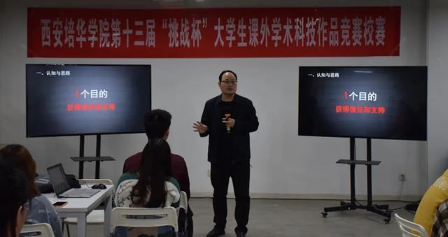 3月30日,西安培华学院第十三届“挑战杯”大学生课外学术科技作品竞赛校赛路演答辩在创客中心二楼培训厅举行,本次路演答辩邀请“挑战杯”省赛评委张伟老师及两位校内老师作为评审嘉宾。各项目团队分别从项目的背景、创新性、实用性等角度以PPT的形式进行了全方位介绍和展示。评委对每个项目的优缺点进行点评,让学生了解了自己项目存在问题和改进方法。