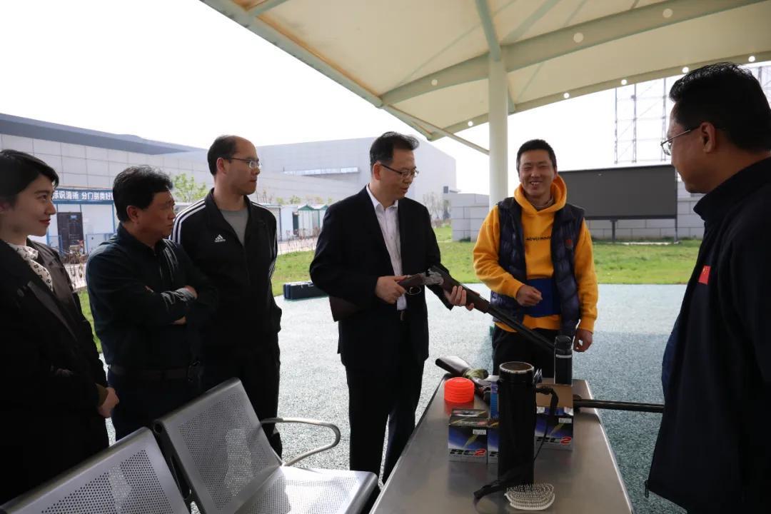 4月8日下午,西安培华学院理事长姜波,监事会主席、校党委副书记兼校体育委员会主任徐国富,体育学院院长王志强,副院长、党支部书记马德厚一行赴陕西省射击射箭运动管理中心西安市长安区常宁生态训练基地参观调研。在陕西省射运管理中心主任高文辉,副主任敖利志等人的陪同下,姜波理事长一行人参观了新落成使用的射运管理中心训练场馆及设施建设,并亲自体验了射击射箭运动项目。