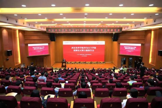 近日,西安培华学院、华为技术有限公司在维之图书馆报告厅举行“华为ICT学院授牌仪式暨主题报告会”。华为陕西政企副总经理吴楠,全球人才培训中心西北总监冉龙,西安培华学院理事长姜波,校长助理秦海锋,智能科学与信息工程学院院长程国建,副院长田孝华,西安云火网络科技有限公司总经理张虎及近300人参加本次授牌仪式。仪式由智能科学与信息工程学院院长程国建主持。