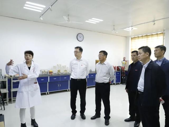 专家组成员在姜波理事长的陪同下,对学校云财务中心、校史馆、省级医学实验教学中心和大学生文体中心进行走访考察。
