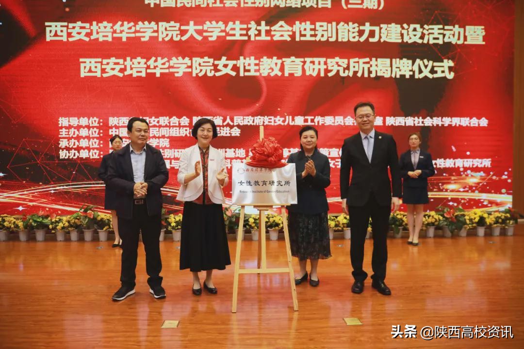 陕西省妇联副巡视员陈小江,陕西省社会科学界联合会党组成员、副主席张雄,西安培华学院理事长姜波,西安培华学院学术学位委员会主席、副校长刘越莲,为“西安培华学院女性教育研究所”揭牌。