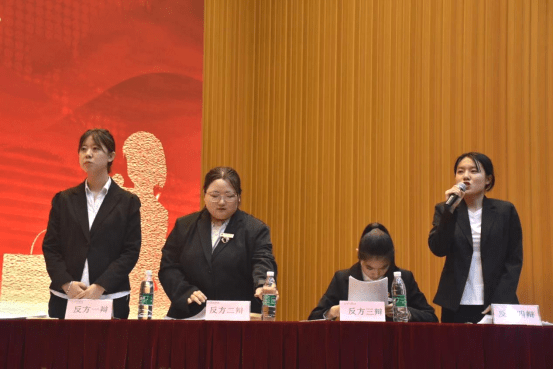 开场后正反方辩手清晰直白地阐述己方观点,立论明确,思路清晰。随后双方辩手对对方辩手的盘问认真应答,在坚持己方观点的同时迅速做出回击。思维敏捷,反应灵敏,赢得了台下观众的阵阵掌声。双方选手语言和思想的激烈碰撞,让大家看见了双方辩论队奋勇争先的态度和团结拼搏的精神。