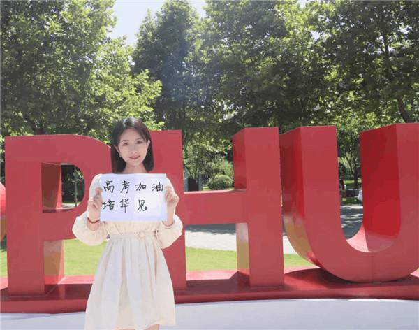 2021年高考第一天,培华学子为考生送祝福 供图 西安培华学院