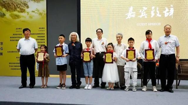 陕西国画院张华副院长、陕西省中国画学会副会长兼秘书长罗宁、西安建筑科技大学教授王志平为联合单位缤纷鸟教育集团、艺启点书画教育集团、汉林美术培训学校颁发了优秀美育单位奖。