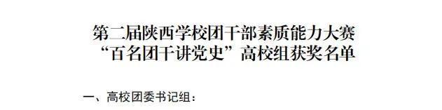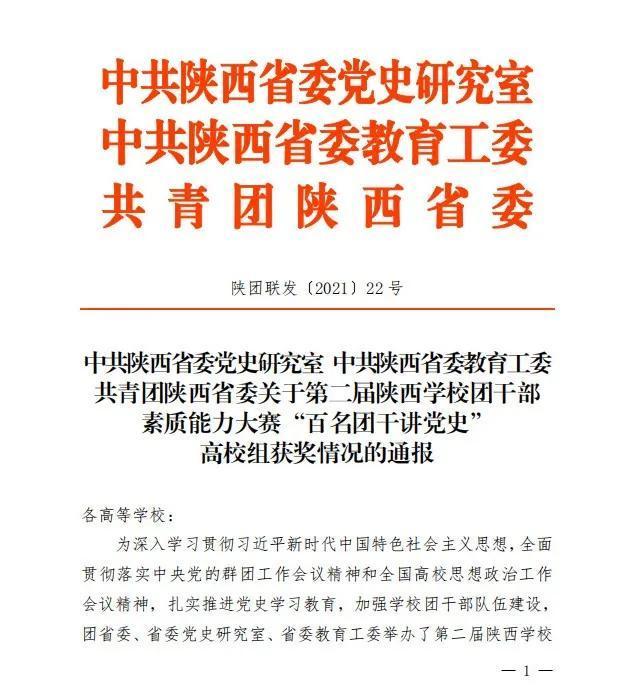 近日,由中共陕西省委党史研究室 中共陕西省委教育工委 共青团陕西省委举办的第二届陕西学校团干部素质能力大赛“百名团干讲党史”高校组获奖情况揭晓。在本次大赛中,西安培华学院团委副书记杨媛荣获“高校团委书记组”优秀奖;智能科学与信息工程学院团委书记范思媛在“专职团干部组”中荣获优秀奖;人文国际教育学院团委书记吕园在“专职团干部组”中荣获优秀奖;智能科学与信息工程学院常乐乐同学荣获“学生团干部组”优秀奖。