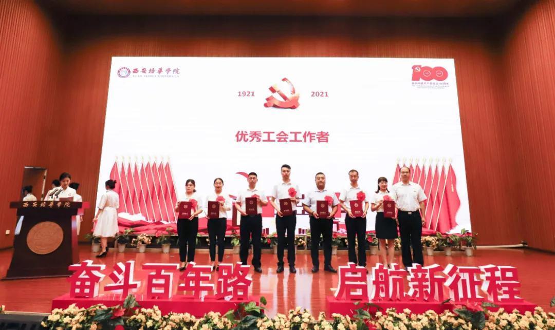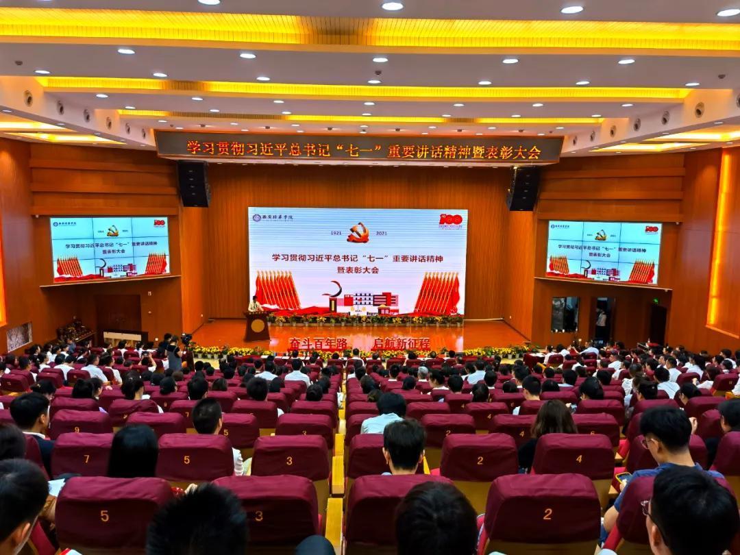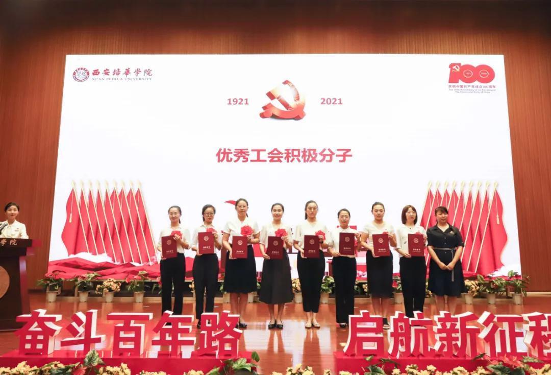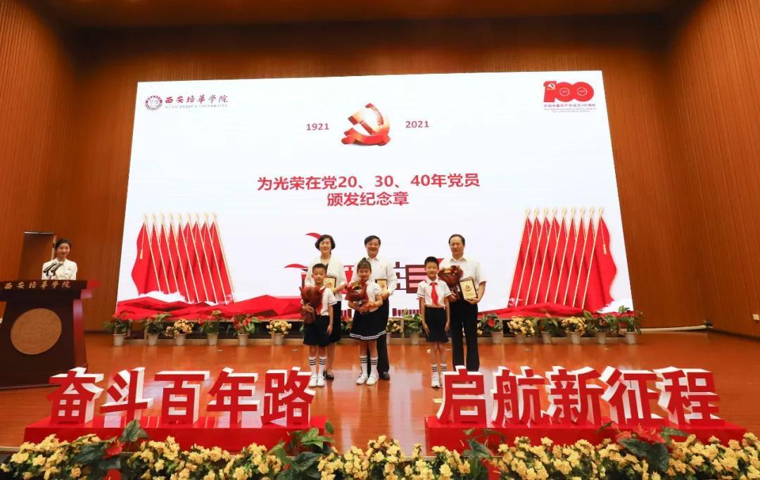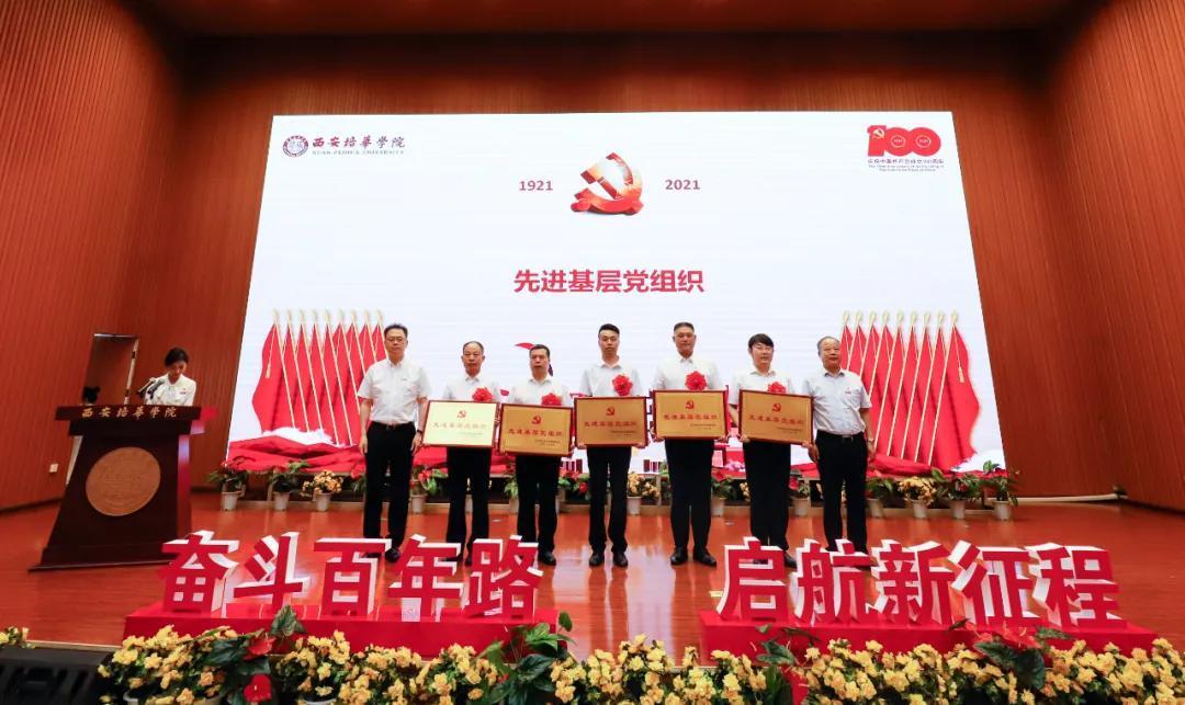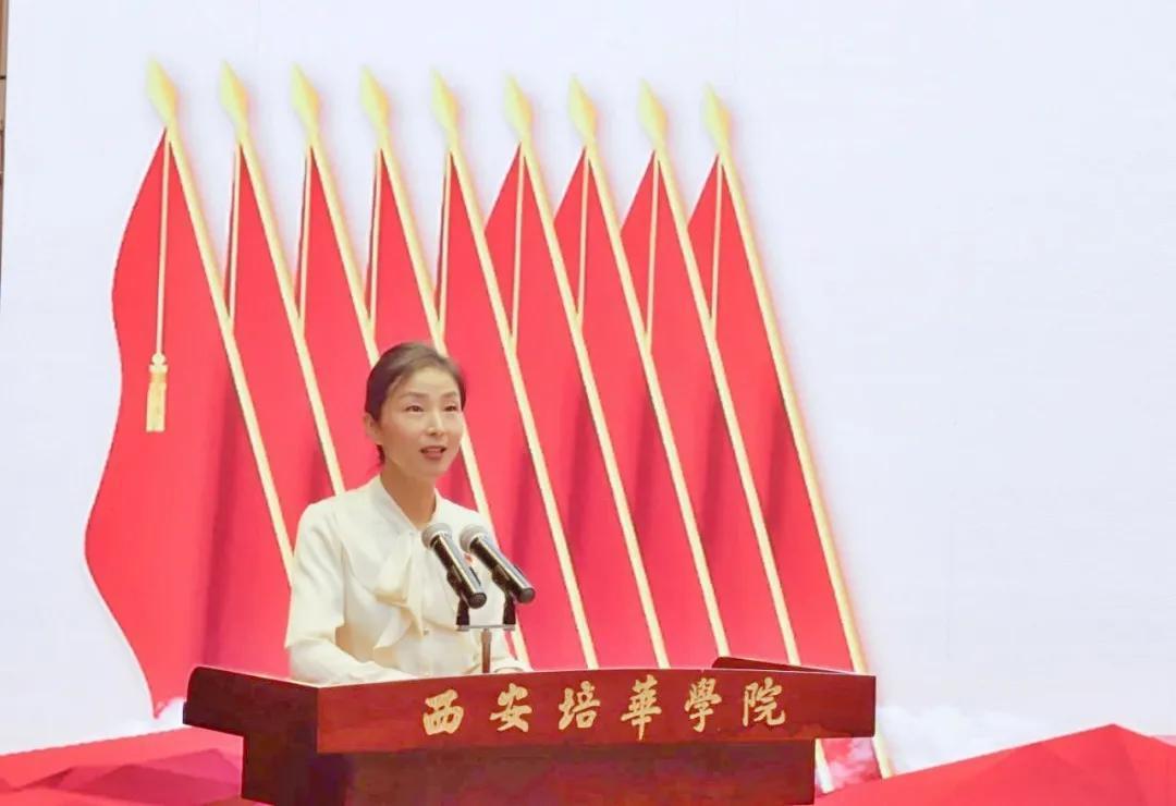奋斗百年路,启航新征程。为热烈庆祝中国共产党成立100周年,2021年7月9日上午,西安培华学院学习贯彻习近平总书记“七一”重要讲话精神暨表彰大会隆重召开。陕西省政协常委、致公党陕西省委会副主委、西安培华学院理事长姜波出席活动并讲话,学校党政领导班子成员,各基层党组织负责人,校工会委员会委员,各基层分会主席,各单位党务兼行政干事,受表彰的先进单位、优秀个人代表,参加宣誓的新党员代表以及师生党员代表参加了活动。