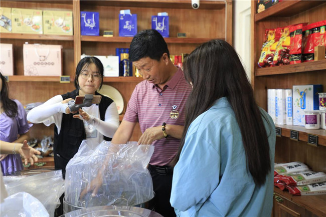 活动中,实践队员受邀品尝了当地特色茶叶,并在当地工作人员的带领下,参观了长安镇洪福茶乡以及老县镇蒋家坪的凤凰茶山。在青山环绕中,队员们与当地茶农深入交流,拍摄茶叶宣传视频,收集产业发展资料,为后续的宣传推广打牢基础。