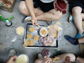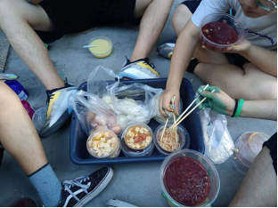 同学们围坐在一起吃饭