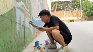 十天弹指一挥间,很快便过去了,二百余平方米的墙面早已焕然一新五连六色的颜料调和出每个人心中最美的色调,队员们充分发挥自己的专业特长用画笔勾勒出一幅活灵活现的文化墙以艺术画笔描绘医院历史长河与艾同行提高医院艺术文化的同时提升在笑生的专业能力也增加了生活阅历架起了一座大学生对外交流与沟通的桥梁。