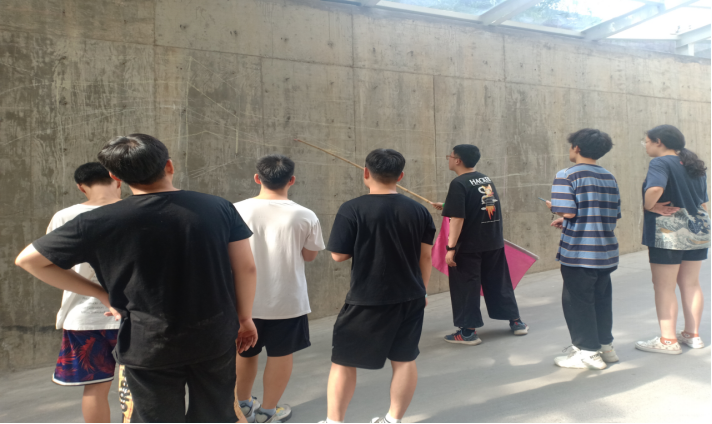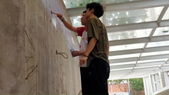 实践的过程并非一帆风顺,实践地点位于地下停车库,队员们经常需要上下脚手架,而过往车辆颇多,来来往往的车辆与行人经常穿梭在墙绘场地,无疑给队员们墙绘的绘制增加了一系列的困难。但在一次次克服困难后,收获的不仅是一整面带有实践地艺术文化特色的文化墙,同时也让队员们明白了方法总比困难多的道理,也明白了破茧成蝶的过程有多不容易。居住环境为医院的员工宿舍,夜里蚊虫很多且十分炎热,队员们并非睡得很踏实,早上还要早起工作,避开炎热暴晒的酷暑。通往医院30分钟左右的路程队员每天必须要经历4次左右,但每一位队员都不曾放弃,都在奋力完成我们的实践目标,努力达到实践最完美的效果。
