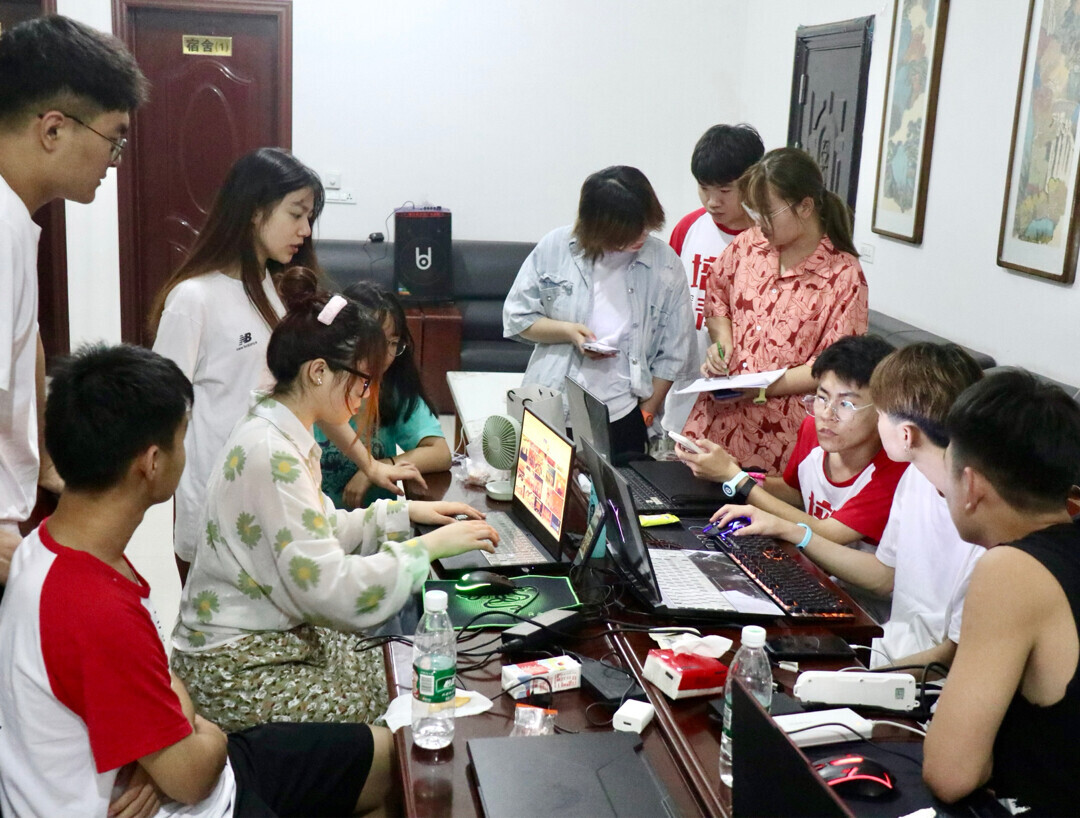 图为实践小队一起商讨设计稿方案 中国青年网邓楚诗 摄