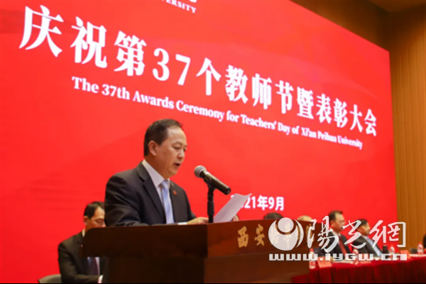 9月9日下午,西安培华学院在维之图书馆报告厅举行2021年庆祝教师节暨表彰大会。全体校级领导,各院(部)、中心负责人、教师代表、辅导员代表近300人参加了会议。