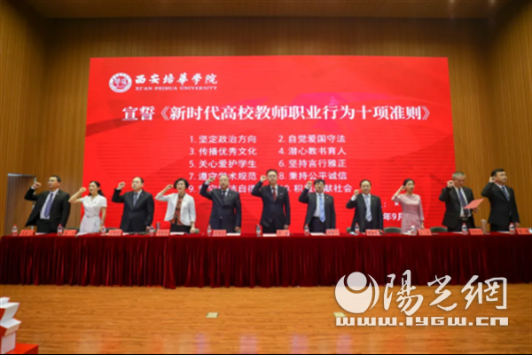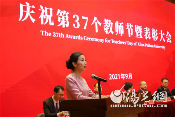 9月9日下午,西安培华学院在维之图书馆报告厅举行2021年庆祝教师节暨表彰大会。全体校级领导,各院(部)、中心负责人、教师代表、辅导员代表近300人参加了会议。