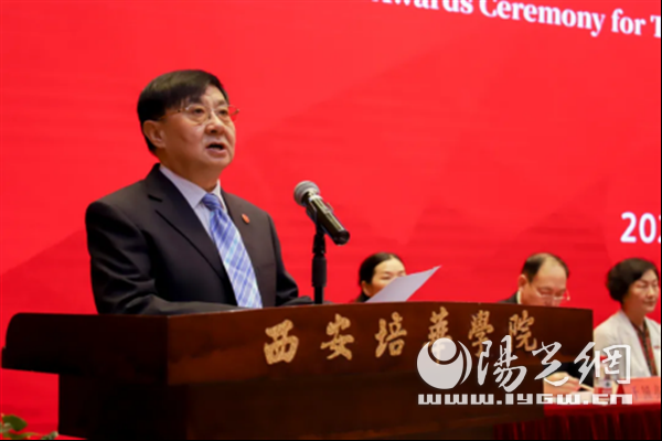 党委副书记、工会主席徐国富教授宣读《西安培华学院工会关于表彰2021年光荣从教满20年人员的决定》《西安培华学院关于第二届最美教师和最美职员评选结果的通报》