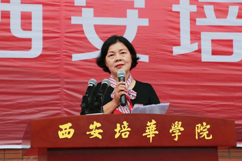 高安文女士回顾了与培华的相遇相知,并代表前30年历届毕业生向为培华发展付出心血的全体教师表达了衷心感谢。她讲到,培华“校誉至上、质量第一、自强不息、开拓前进”校训早已成为了自己职业生涯努力打拼的信念,也将性格中的乐观而刚毅、勇敢而坚强的培华精神,传递给身边所有的人。她表示,培华学院作为一所常新的大学,新于勇担时代使命、新于办一流学院、育一流人才、做一流贡献,并祝语在座新生勇担时代使命,成长为一流人才,做一流贡献,将培华精神以及发自内心的情愫传承下去。