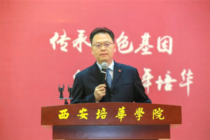 中共陕西省委教育工委、陕西省教育厅二级巡视员罗侃淳在致辞中谈到,西安培华学院作为民办高校的优秀代表,今天的活动我们感受到培华学子发自内心的爱国热情,展示了培华朝气蓬勃的办学活力。西安培华学院获赠红旗,建设了爱国主义教育阵地,使命光荣、意义重大,为陕西省爱国主义教育开辟了新的阵地、丰富了新的内容,是陕西省民办教育系统开展党史教育的一个闪光点,更是培华广大师生的骄傲。