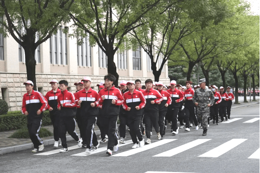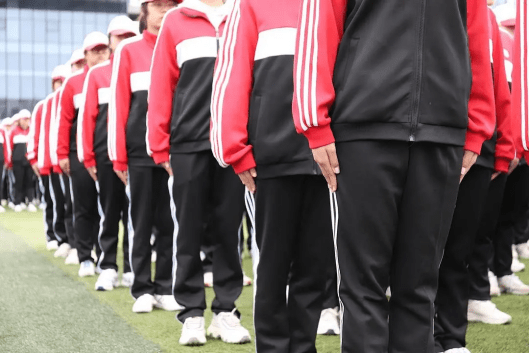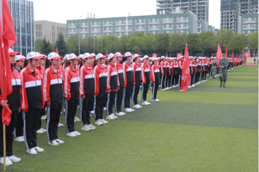 抬头、挺胸、收腹,秋风萧瑟,身着红装的你们意气风发,稍息、立正、跑步走,一令一动,整齐划一,目光笃定,脚步铿锵,站着最挺拔的军姿,喊着最响亮的口号,是青春的气息。