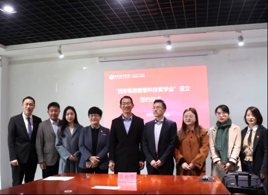 为实现校企双方资源共享,深化产教融合,11月16日上午,西安培华学院建筑与艺术设计学院与西安锐思数智科技股份有限公司(以下简称“锐思数智”)于汇知楼举行了企业奖学金设立签约仪式,并进行座谈交流。西安培华学院校长助理兼合作与发展办公室主任秦海锋,建筑与艺术设计学院常务副院长徐莹,党委宣传部部长、校友服务与发展中心主任柳雨,建筑与艺术设计学院党委书记兼行政副院长权勇太等领导及锐思数智总裁赵航、人力资源总监李敏等出席了仪式。