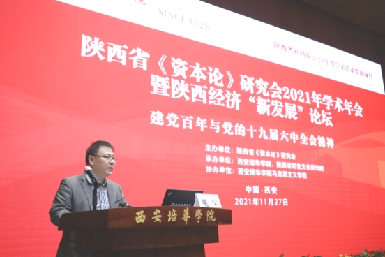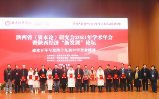 11月27日,陕西省《资本论》研究会2021年学术年会暨陕西经济“新发展”论坛在西安培华学院图书馆报告厅举办。本次学术年会由陕西省《资本论》研究会主办,西安培华学院、陕西省红色文化研究院承办,西安培华学院马克思主义学院协办。来自西安交通大学、陕西师范大学、西北工业大学、西北大学、西北农林科技大学、西安石油大学、西安工业大学、西安财经大学、西安科技大学、中共陕西省委党校、陕西省社科院等单位50余名专家学者以及学校马克思主义学院全体教师参加了此次会议。开幕式和颁奖环节由陕西省《资本论》研究会副会长、西北工业大学胡红安教授主持。