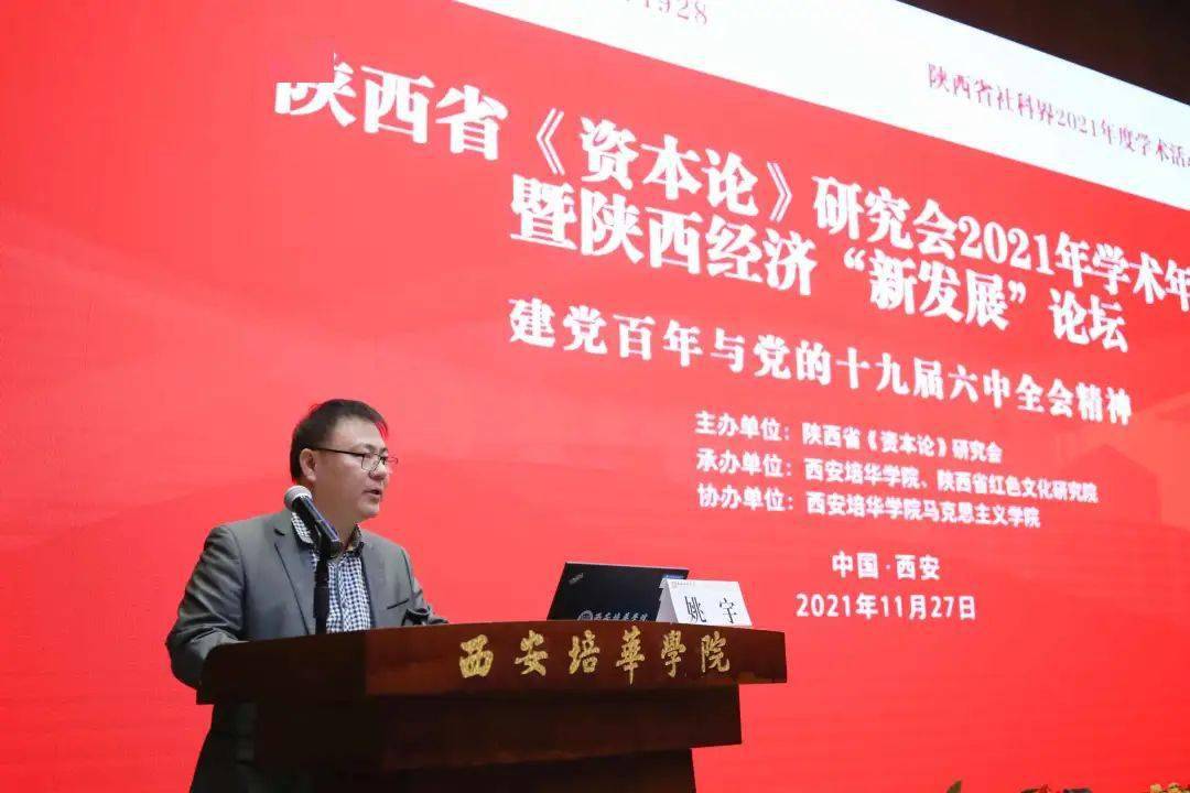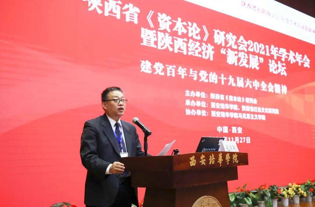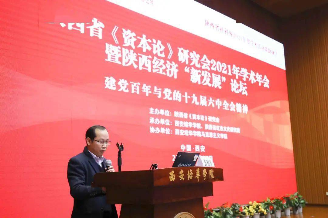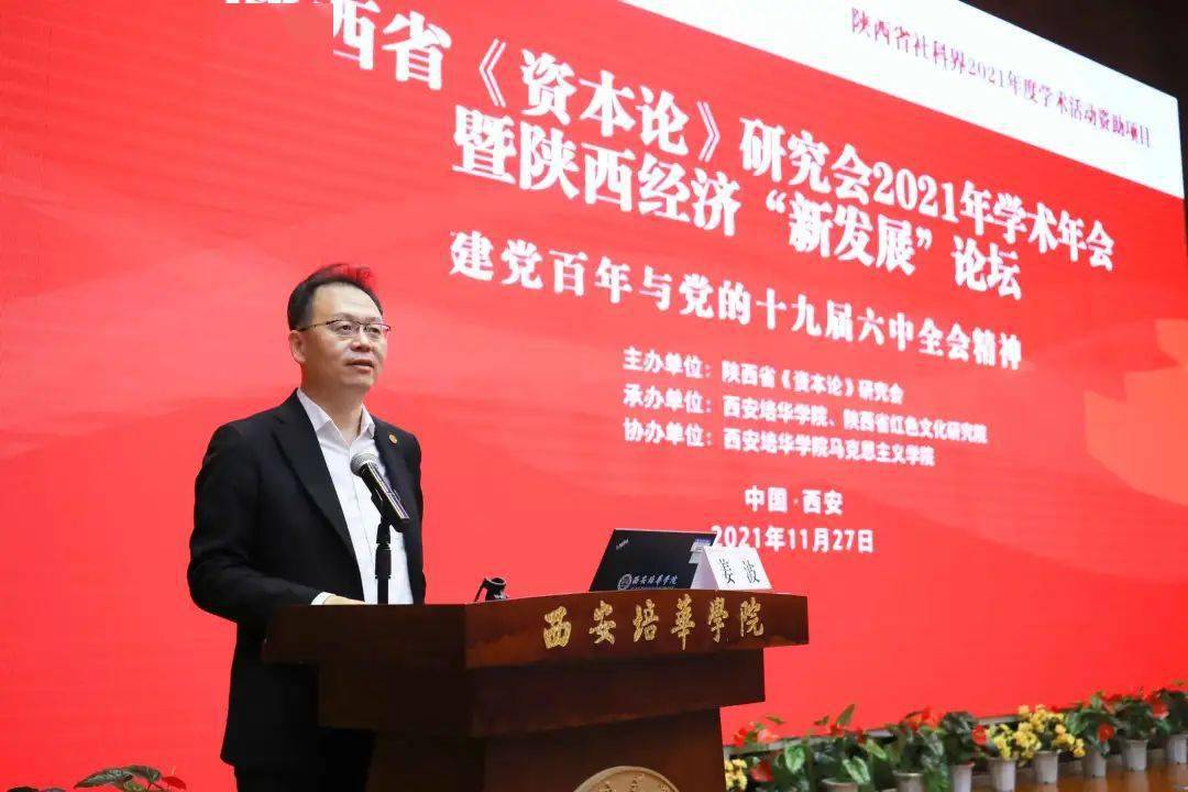 11月27日,陕西省《资本论》研究会2021年学术年会暨陕西经济“新发展”论坛在西安培华学院图书馆报告厅举办。本次学术年会由陕西省《资本论》研究会主办,西安培华学院、陕西省红色文化研究院承办,西安培华学院马克思主义学院协办。来自西安交通大学、陕西师范大学、西北工业大学、西北大学、西北农林科技大学、西安石油大学、西安工业大学、西安财经大学、西安科技大学、中共陕西省委党校、陕西省社科院等单位50余名专家学者以及我校马克思主义学院全体教师参加了此次会议。