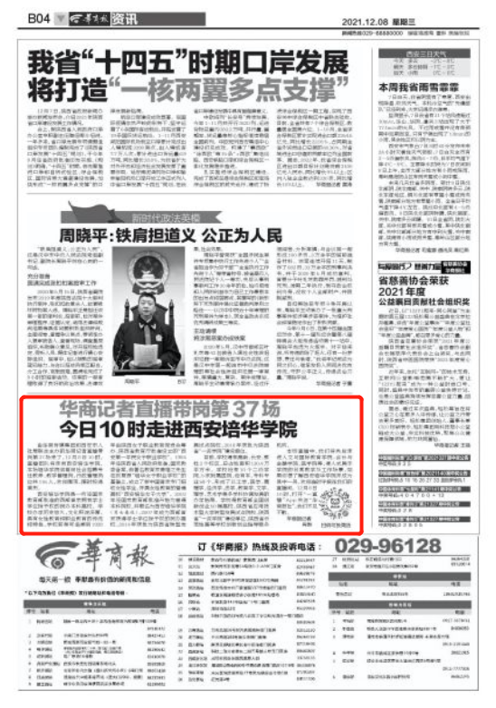 本场直播中,我们将先后走进人文与国际教育学院、会计与金融学院、医学院等,浸入式展示学院的日常教学及工作场景,如果你想了解西安培华学院并成为其中一员,欢迎准时守候在我们的直播间。12月8日10时,打开“一直播”App关注“华商报社”,我们不见不散。
