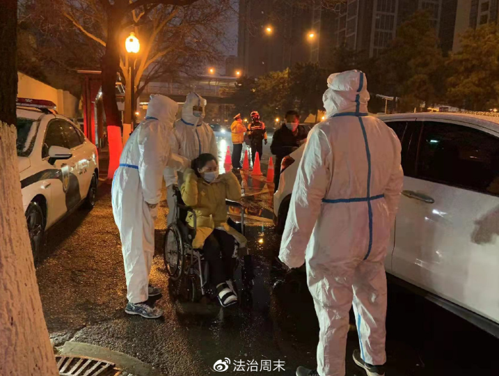 陕西师范大学考点外,西安中院干警护送行动不便的考生进入考区。
