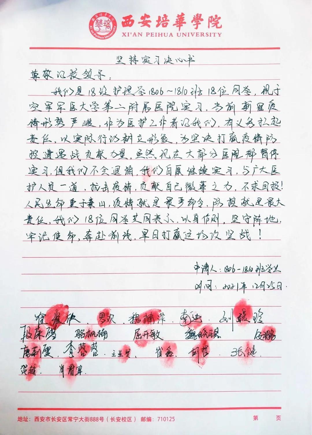 纷纷写下《坚持实习决心书》