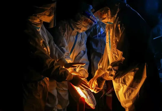 医护人员深夜烤火取暖